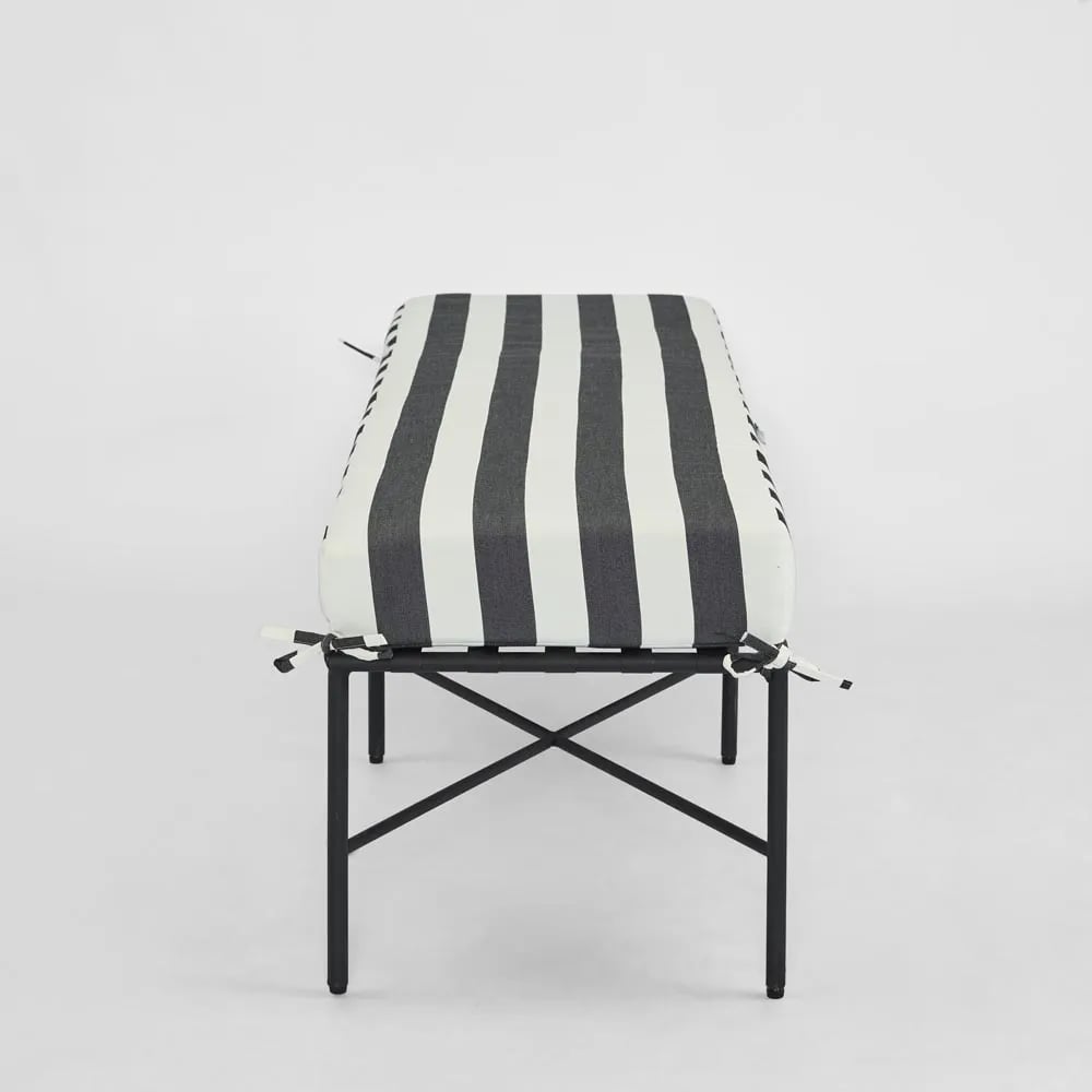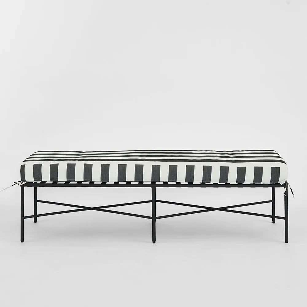 Our new outdoor bench brings a bold, timeless charm to any garden or alfresco space, finished in Layla's iconic black and white striped outdoor fabric. Light, classic and quietly elegant, it is the perfect piece for layering into verandas, patios, outdoor rooms and poolside corners.
